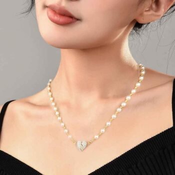 Heart-Shaped Pearl Necklace – Diamond Studded Magnetic with Two Gifts
